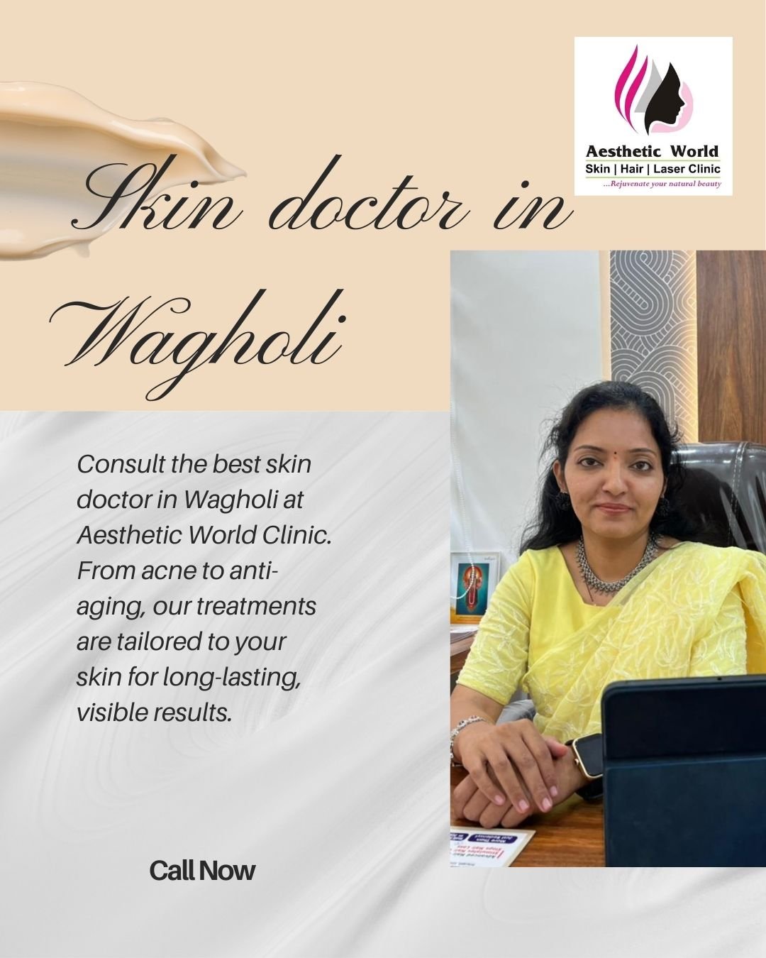 Aesthetic World Clinic, located in Wagholi, Pune, has become a trusted name for advanced skin, hair, and laser treatments. As the best skin and hair clinic in the Wagholi, the clinic offers a comprehensive range of services tailored to address various concerns such as acne treatment, hair loss, and skin rejuvenation. Dr. Swati Phalle, the best dematologist in Wagholi and an expert trichologist and cosmetologist, is renowned for her expertise in treating skin and hair issues, offering personalized care for both men and women. The clinic specializes in a wide range of services including effective acne & pimple treatments, advanced laser skin treatments, PRP therapy for hair restoration, and cutting-edge hair loss solutions. Whether you're seeking non-invasive procedures like HydraFacial, laser hair removal, or acne scar and stretch mark removal, Dr. Swati's clinic provides state-of-the-art treatments to help you achieve flawless skin and hair. With a focus on advanced techniques, the clinic also offers effective treatments for hair thinning in both women and men, ensuring comprehensive care for all your aesthetic needs. If you're looking for the best skin and hair specialist in Pune, or the best skin and hair clinic near Kharadi, Dr. Swati’s Aesthetic World is your go-to destination for all your skin and hair concerns. Whether it's laser hair removal treatment, hair fall and regrowth treatment, or an advanced acne treatment plan, the clinic is dedicated to providing holistic solutions to help you achieve your aesthetic goals and maintain long-term skin and hair health. The clinic’s advanced therapies and expert care make it the top choice for individuals searching for high-quality skin and hair care services in Pune.